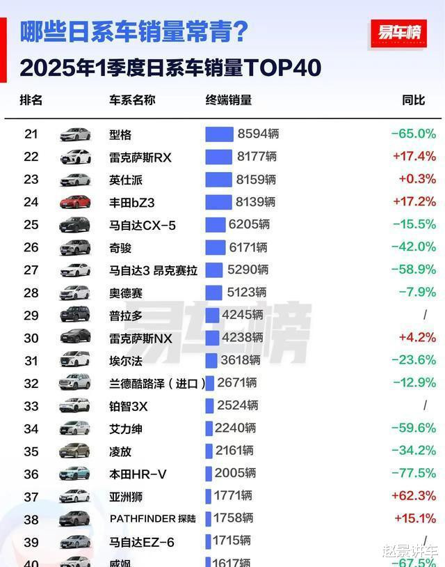 “易车榜”发布的2025年Q1日系车销量,那叫一个“惨”字了得。